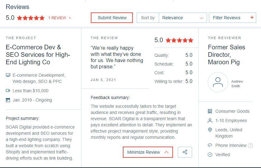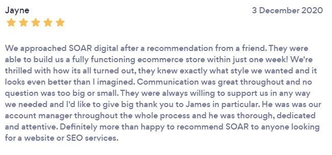 We're thrilled with how its all turned out, they knew exactly what style we wanted and it looks even better than I imagined. They were always willing to support us in any way we needed and I'd like to give big thank you to James in particular. Definitely more than happy to recommend SOAR to anyone looking for a website or SEO services.